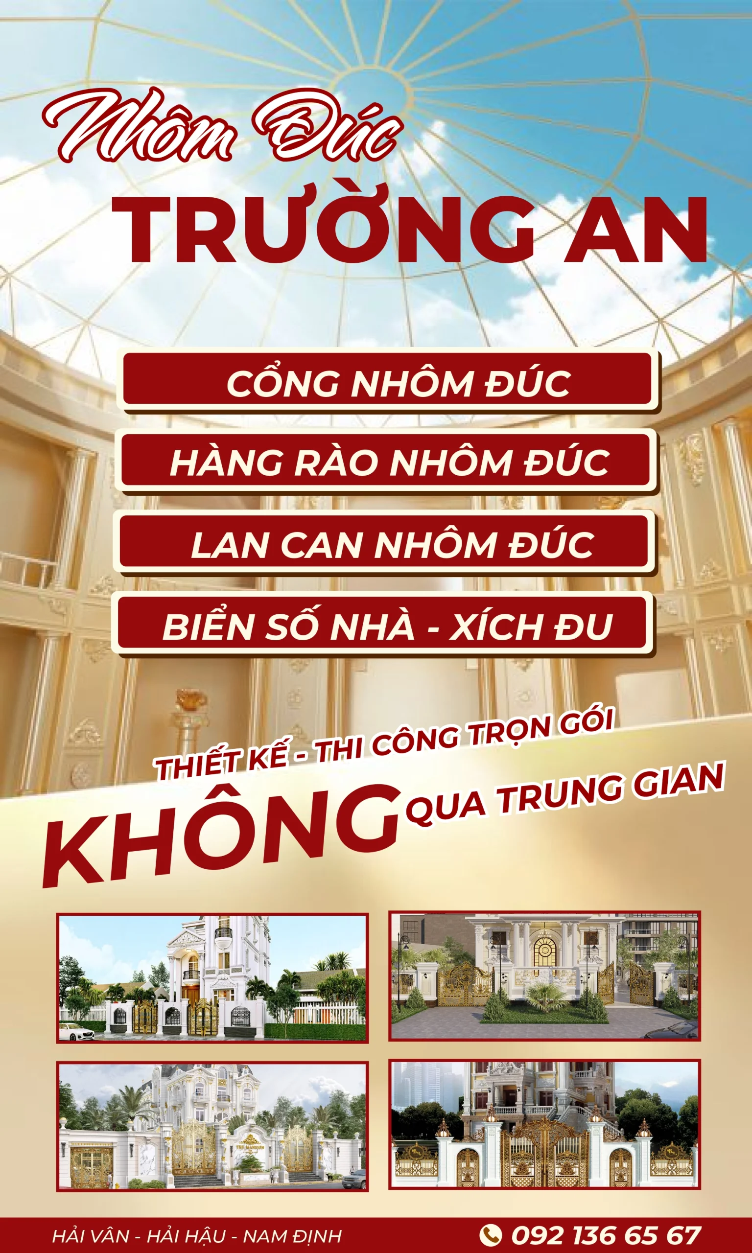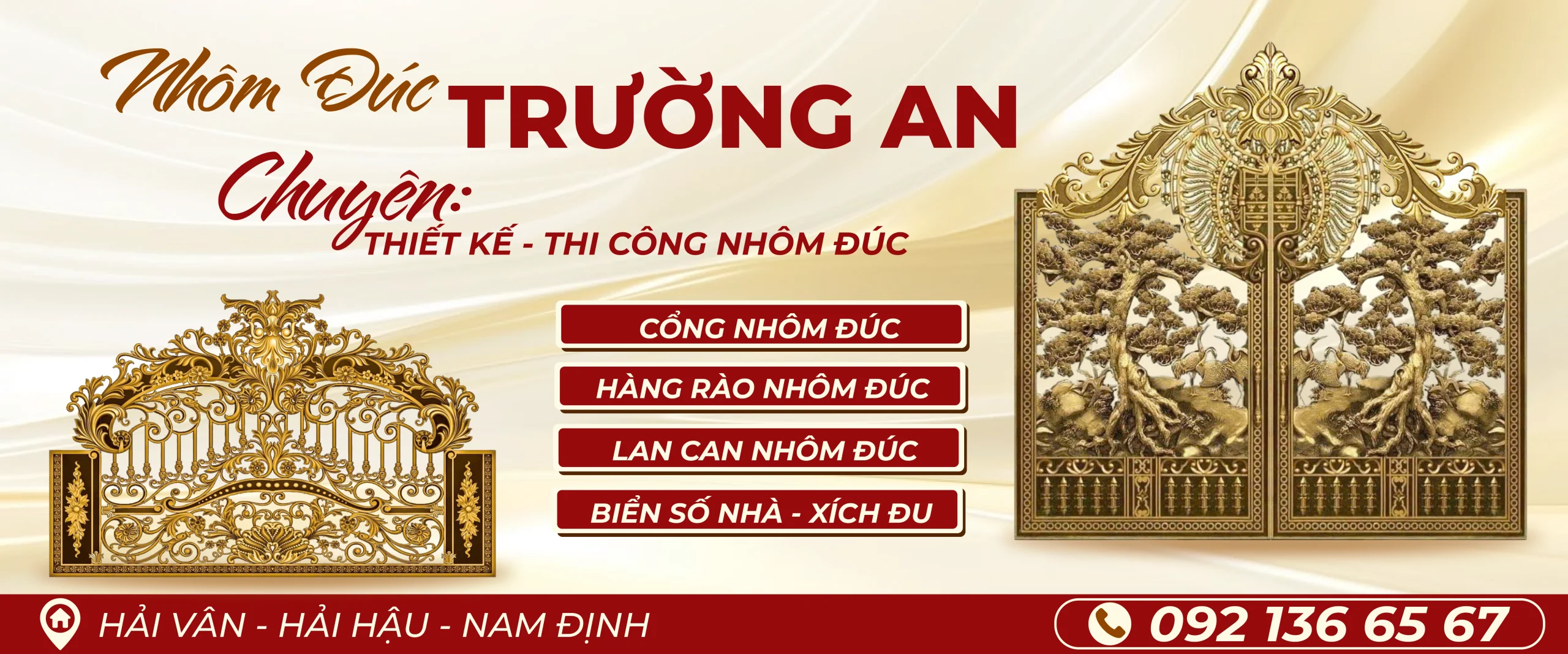 Nhôm đúc Trường An là sản phẩm được sản xuất theo công nghệ đúc nguyên khối từ hợp kim nhôm cao cấp, đảm bảo độ bền cao, kiểu dáng tinh xảo, và chống oxy hóa tốt. Sản phẩm chủ lực gồm: cổng nhôm đúc, hàng rào, ban công, lan can, cầu thang,…